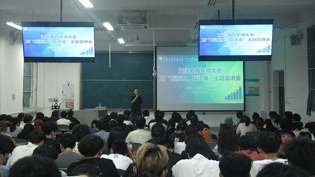 为进一步推进我院本科生学风建设工作,激发学生的学习动力和专业志趣,加强学生诚信教育与日常“反邪教、反诈骗”教育,助力学生绘制出切实可行的学业蓝图,雷竞技RAYBET于2024年9月25日18:30在学府城8-106、8-202召开2023级本科生诚信教育年级大会暨“反邪教、反诈骗”主题宣讲会。