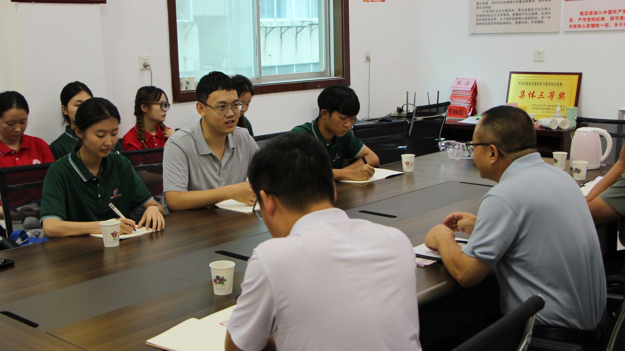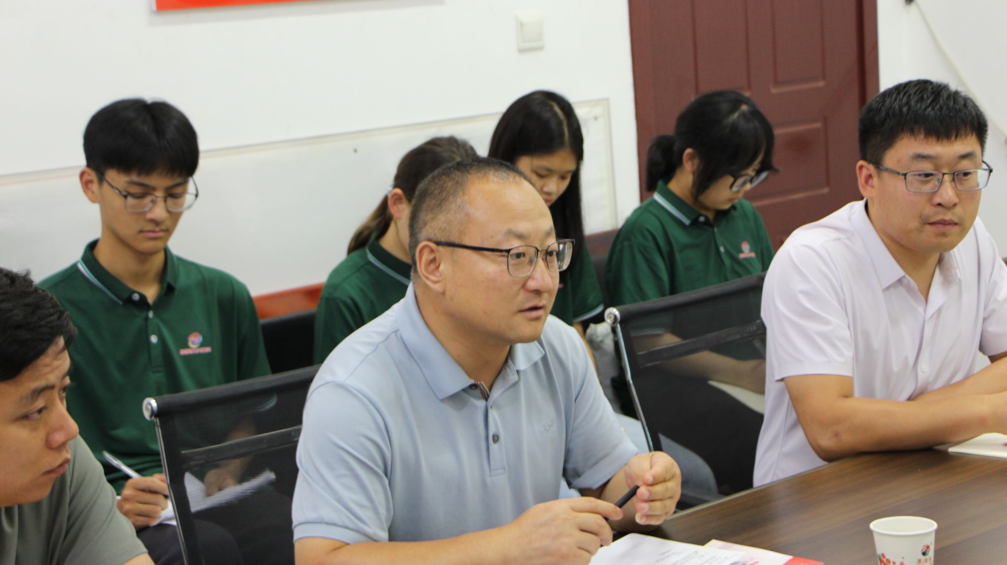图为指导老师在农业农村局与商州区农业农村局魏副局长进行交流座谈。通讯员李泽楷摄